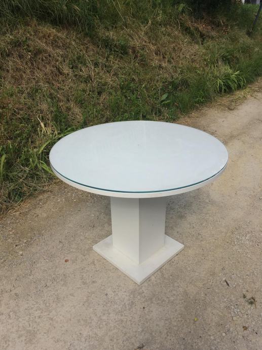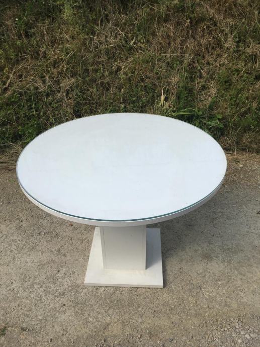 skoro novi okrugli stol sa drvenim krugom i okruglim staklom na njemu koje se moze skinuti 90cm. Molim poruku na njuškalo ili whatsapp