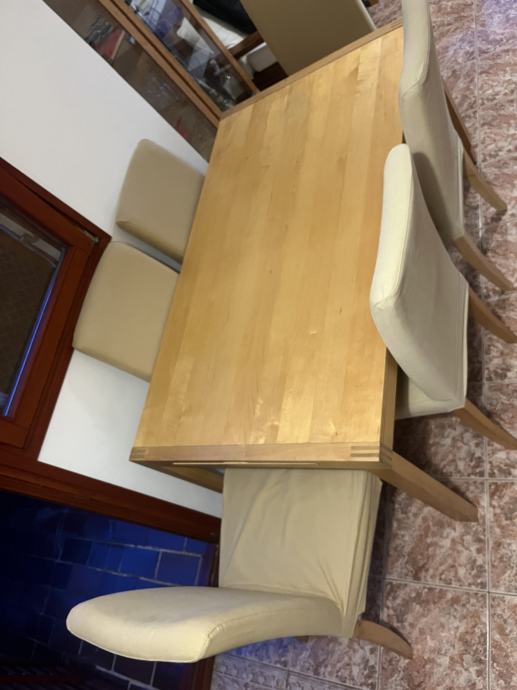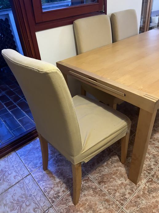 IKEA- Prekrasan blagovaonski komplet, drveni stol i tapicirani stolci