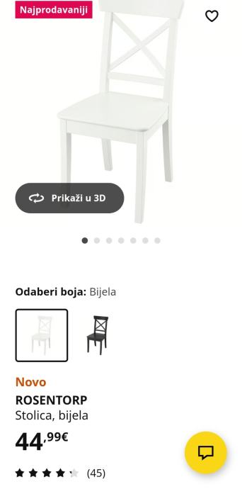 Prodajem novi okrugli produljivi stol Rosentorp i 4 stolice ( bez jastučića).