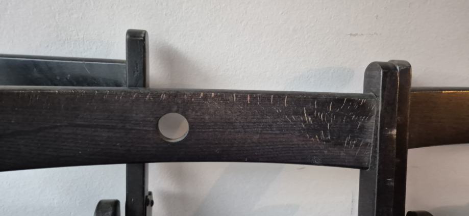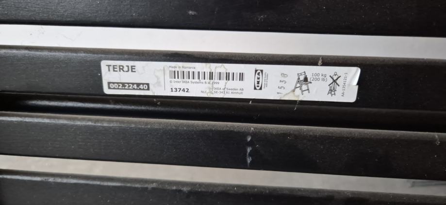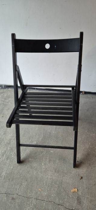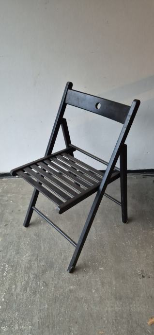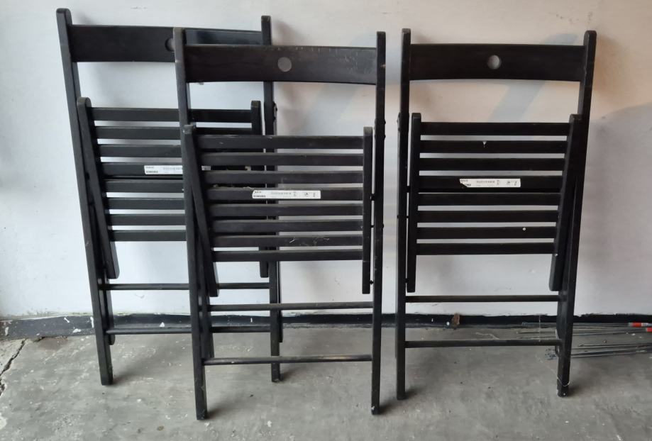 Prodajem 3 IKEA TERJE sklopive stolice. Crne boje, drvene. U dobrom stanju osim što se na par mjesta boja oštetila (vidljivo na slikama).
