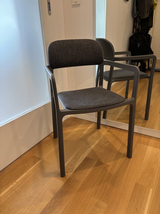 Ikea stolica iz Yperrlig kolekcije. Siva plastična stolica sa sjedištem i naslonom obučenim u sivu tkaninu. Stolica je u odličnom stanju. Moguće skupiti stolicu na adresi. Za dodatne informacije kontaktirati broj u oglasu.