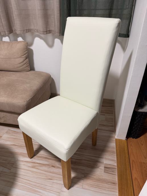Prodajem 5 blagovaonskih stolica kupljenih u Jysk trgovini. Stolice su očuvane, sa sitnim kožnim oštećenjima na ukupno 2 od 5 stolica. Cijena je fiksna, dostava nije moguća, kupac sam preuzima namještaj. Info na broj: 091 224 22 50