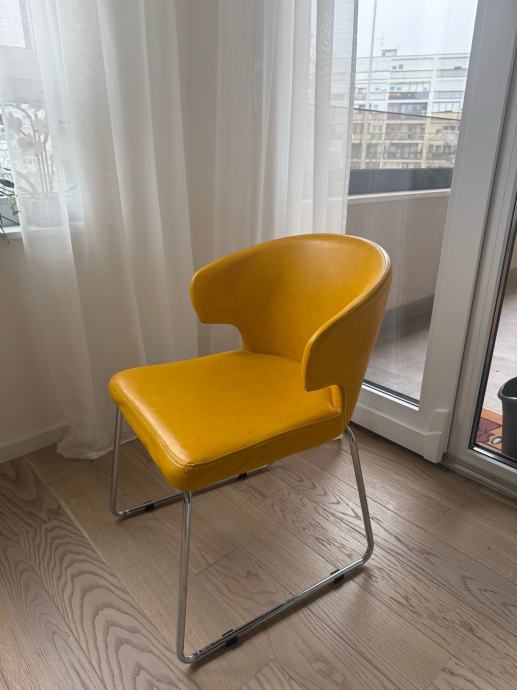 Prodajem Kare design blagovaonske stolice, 6 komada - 4 žute, jedna crvena, jedna plava. Kupljene u dućanu u Splitu, koža je prava, nemaju nikakva oštećenja, dobro su očuvane.