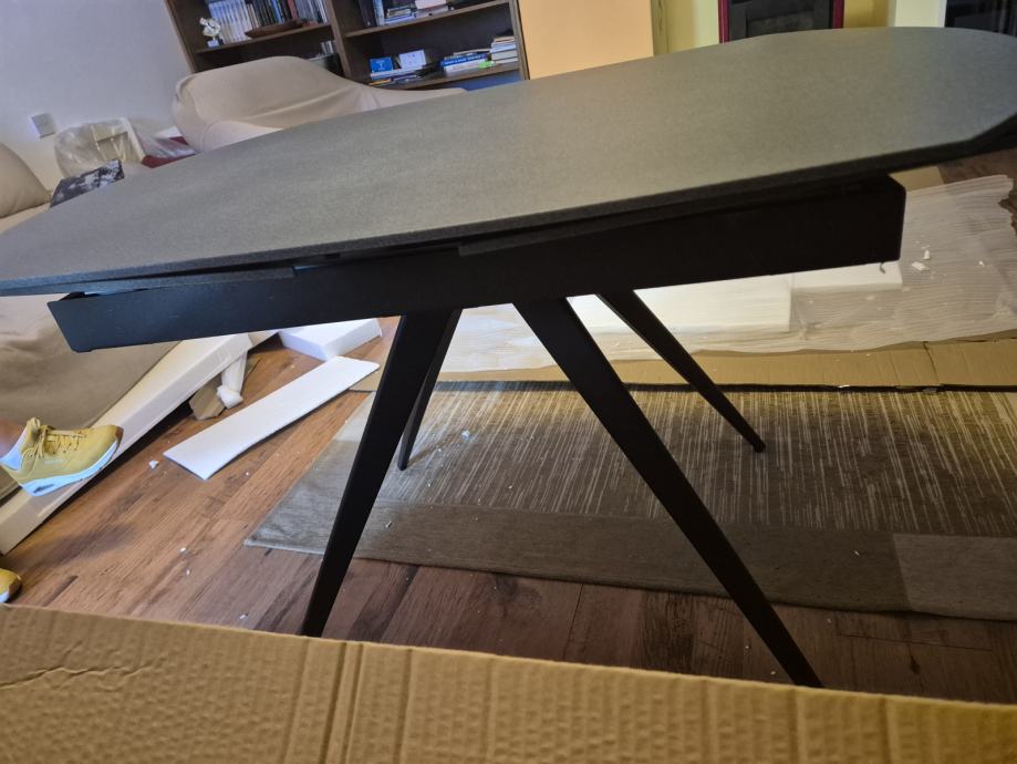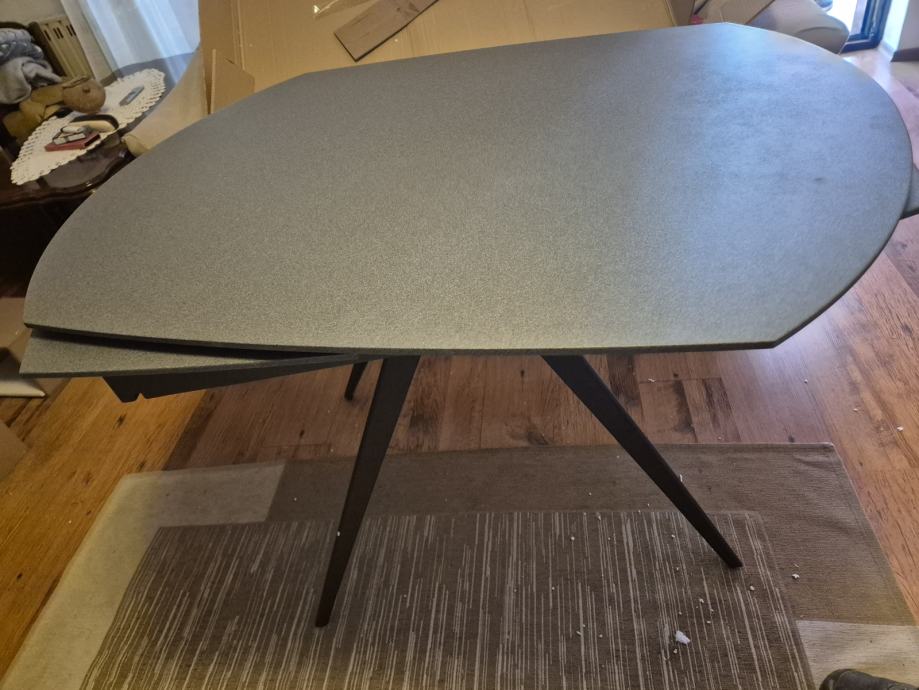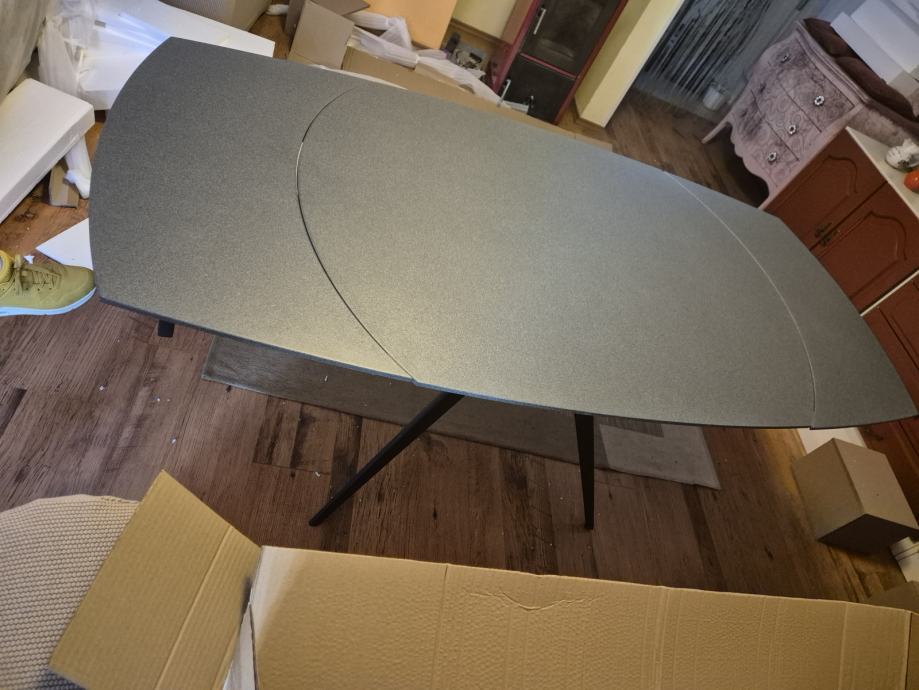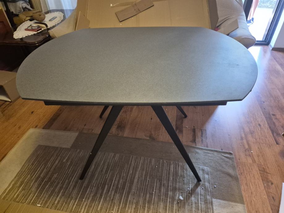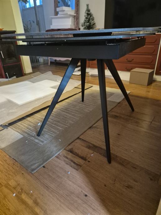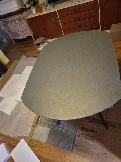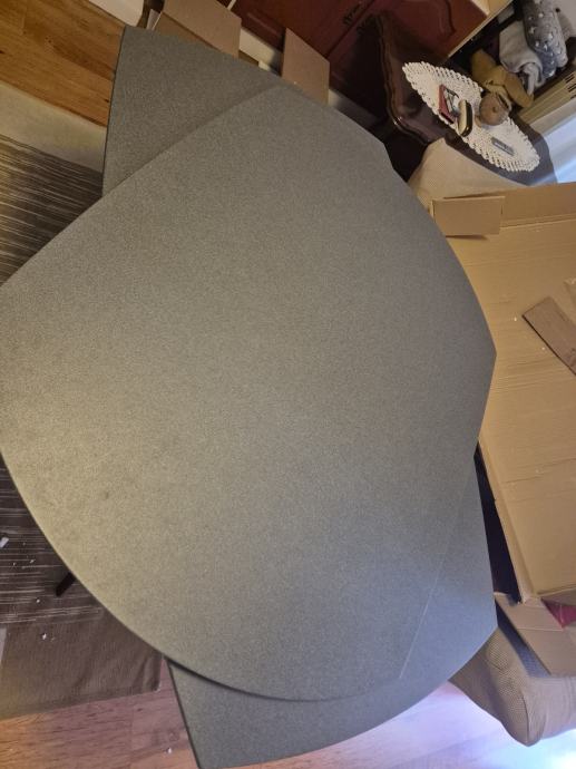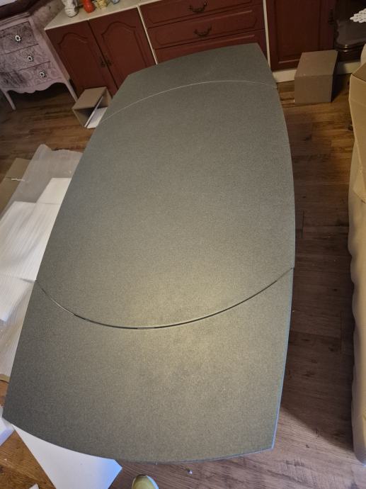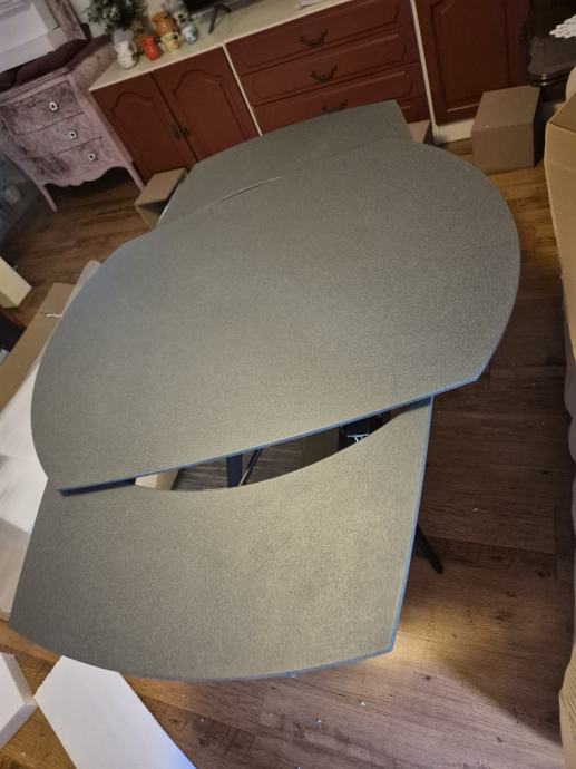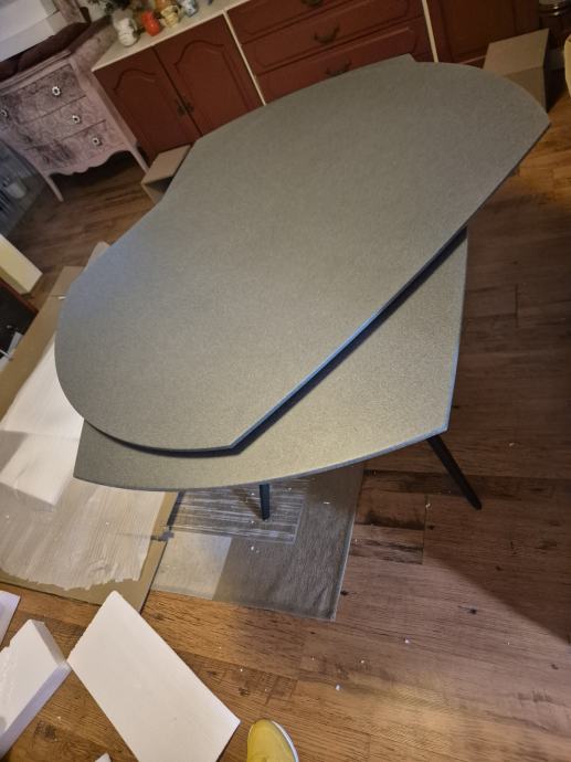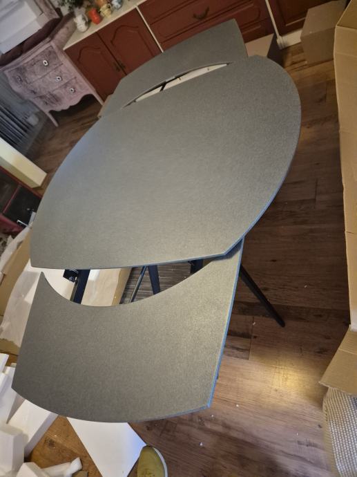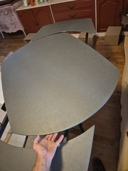 Prodajem stol koji ima konstrukciju od željeza sa mehanizmom koji se jednostavno rotiranjem gornje plohe za 180 stupnjeva pretvori u razvučen stol gdje sa svake strane izlaze van dodatne ploče koji čine stol još većim.