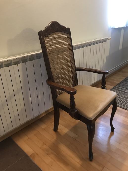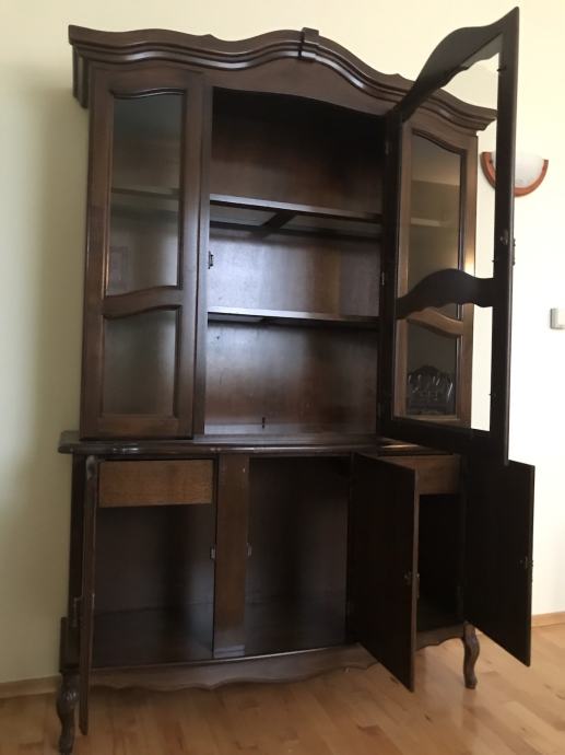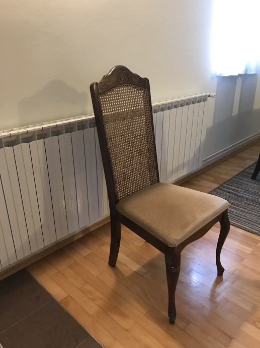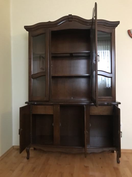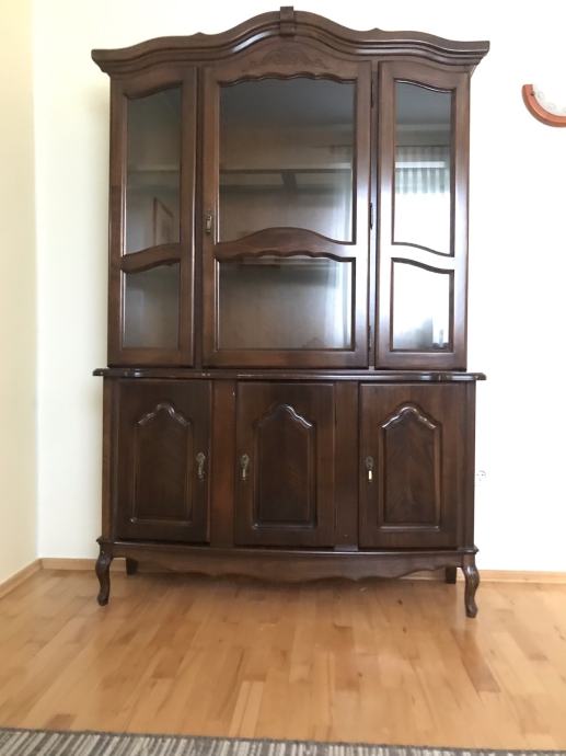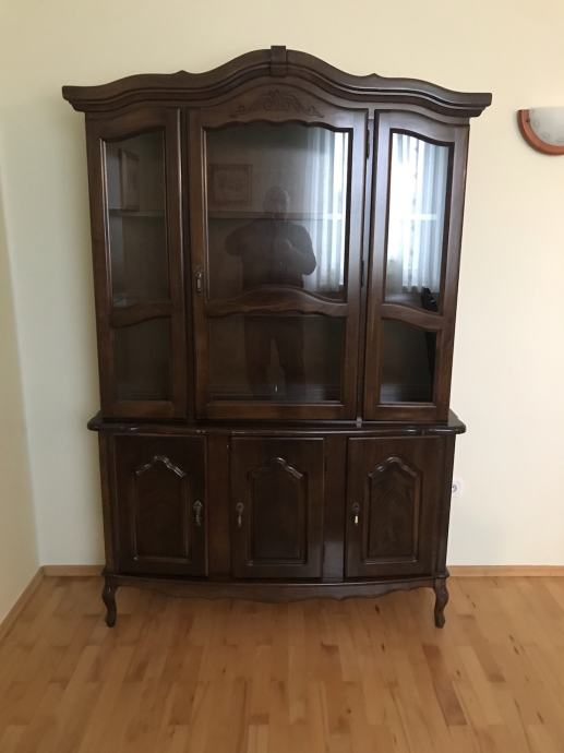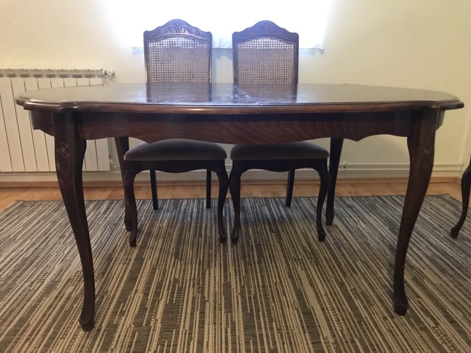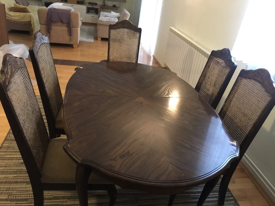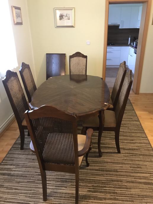 Prodajem masivnu blagovaonsku garnituru čiji komplet čine stol, 6 stolica ( dvije stolice su sa rukohvatom, a 4 bez ), produžetak stola, vitrina i komoda. Dimenzije namještaja su vidljive na deklaracijama a stol je dimenzija ; (170x104x75, a produžetak stola je 45x104 što mu daje ukupnu dužinu od 215 cm ).