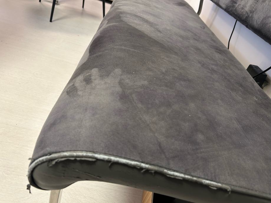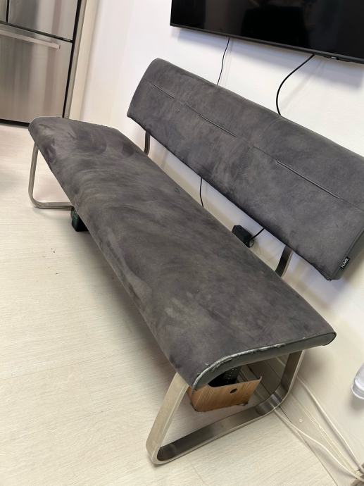 Lesnina klupica tapecirana, ima nekoliko oštećenja (vidljivo na slikama)