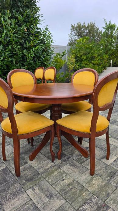 6 stilskih stolica od punog drveta te sto 100cm s pripadajućim staklom.
