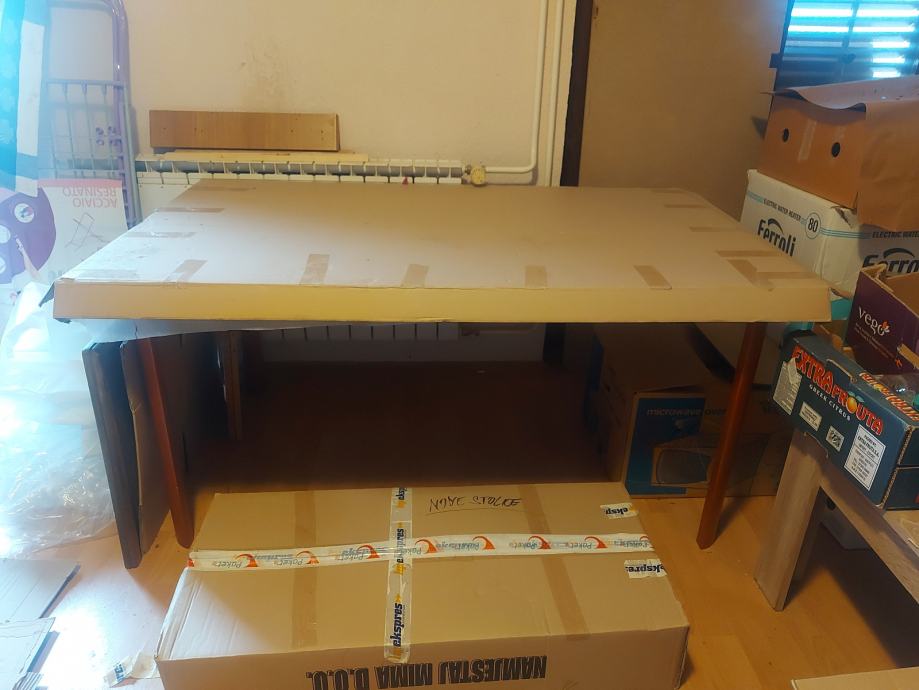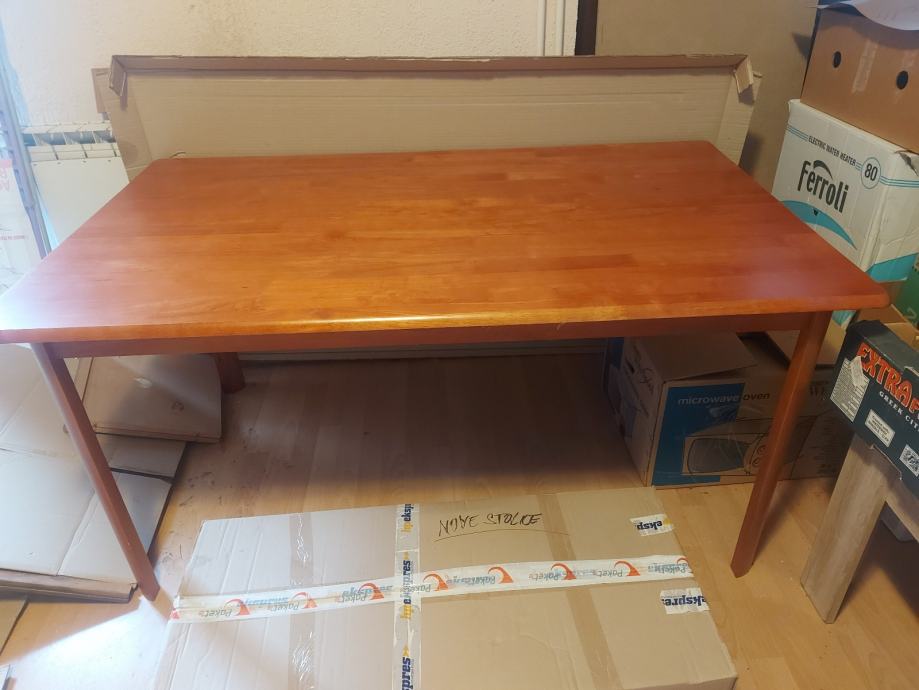 Kuhinjski stol(1,50 X 90CM) u kompletu s 6 stolica sve novo zapakirano, hitno prodajem za 500 eura.091/527-84-34.Ozbiljnom kupcu moguć dogovor oko cijene.