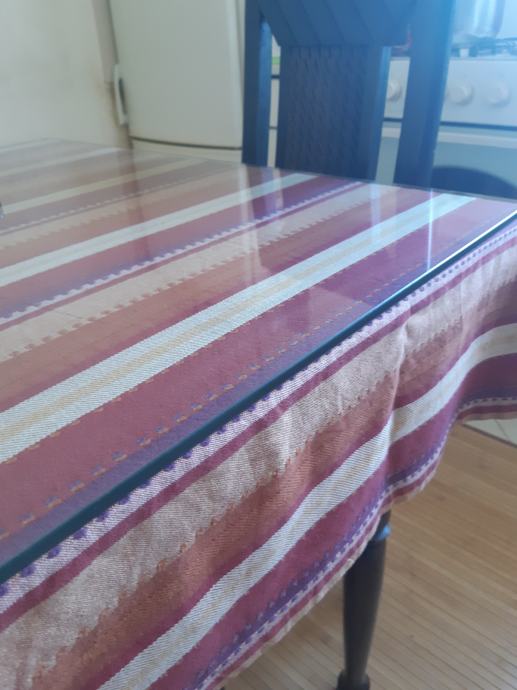 Prodajem kvalitetni kuhinjski stol (crni), dužine 120 cm, širine 76 cm i visine 74 cm. Na stolu je kaljeno staklo debljine 5 mm tako da je visina stola sa staklom 75 cm. Između stola i stakla može se staviti stolnjak, a staklo je otporno i vrlo jednostavno za održavanje.
