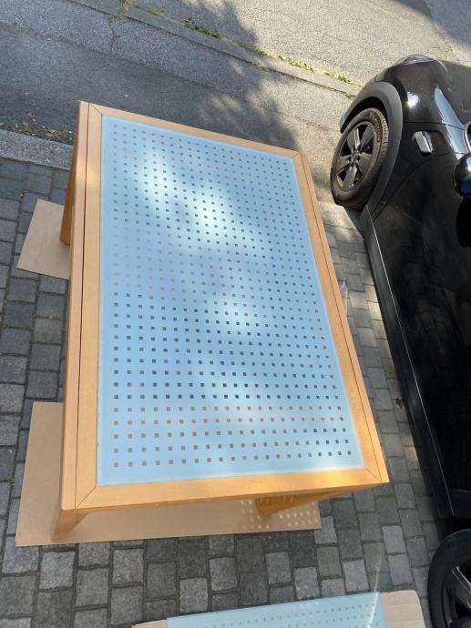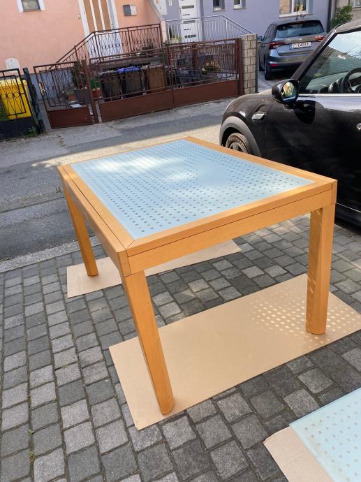 Cetvrtasti drveni stol na razvlacenje s staklenom povrsinom u odlicnom stanju.