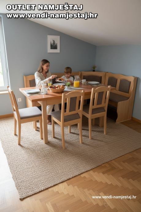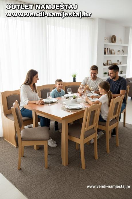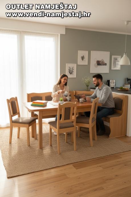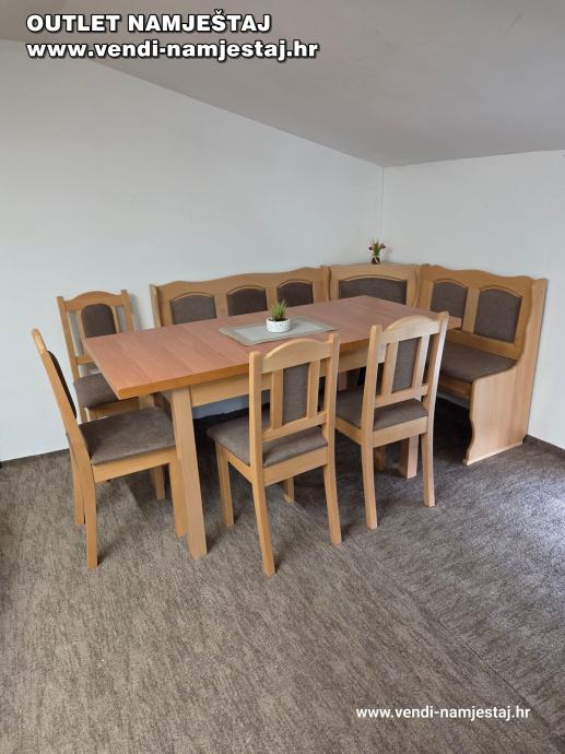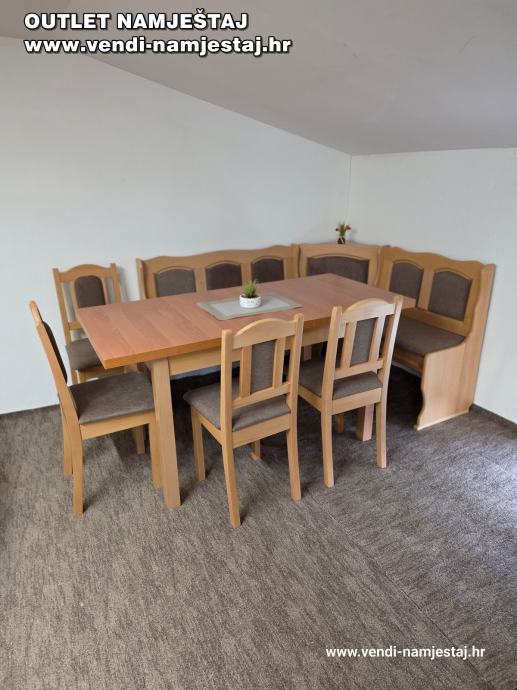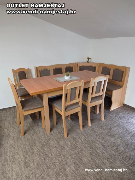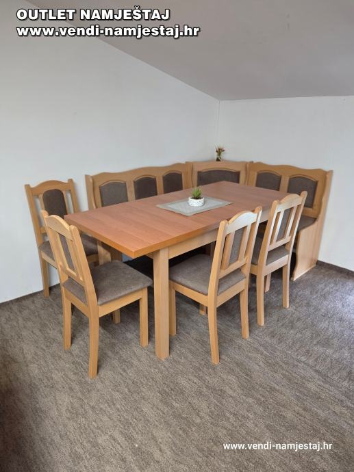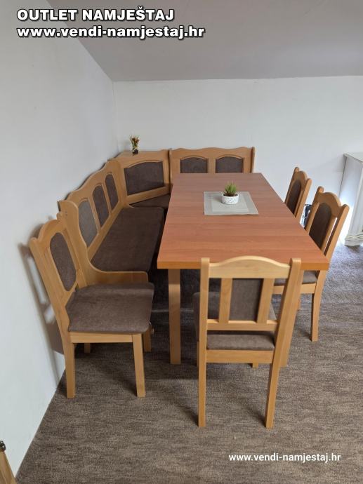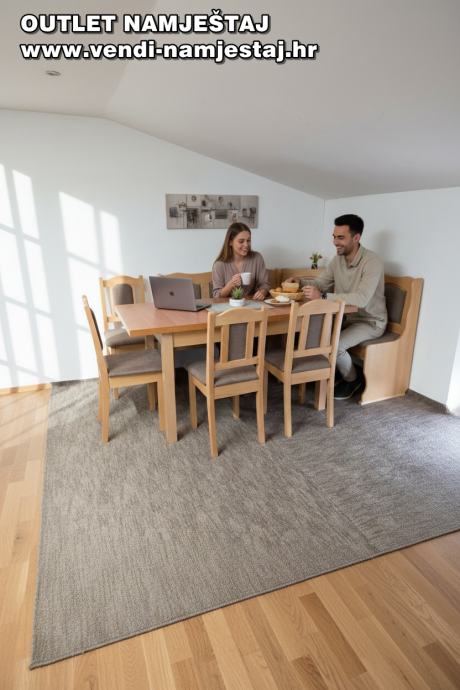 Kutna klupa L ili D, rast.stol, 4 stolice, BRAUN – NOVO