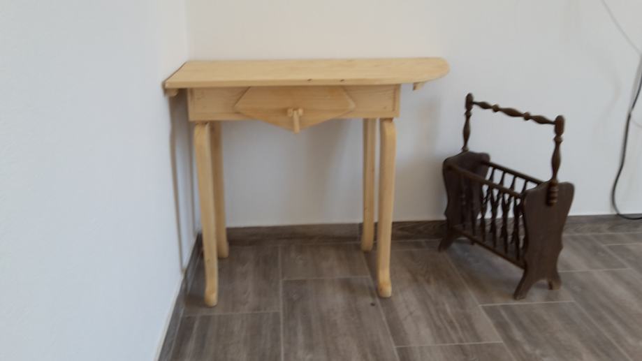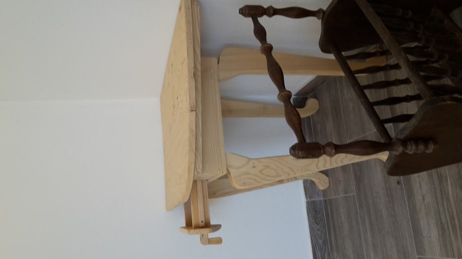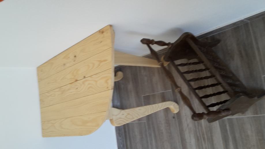 Prodaje se kutni,ugaoni stol od punog drveta vrhunske izrade uz garancuju,stol je podoban za sve prostorie a narucito za apartmane,stol ima 1 ladicu ima krive noge,moze se uokolo stavit tkanina pogotovo ako se koristi u apartmanima,moguce i razne zamjene u biloj tehnici,radi dogovora iskljucivo nazvati
