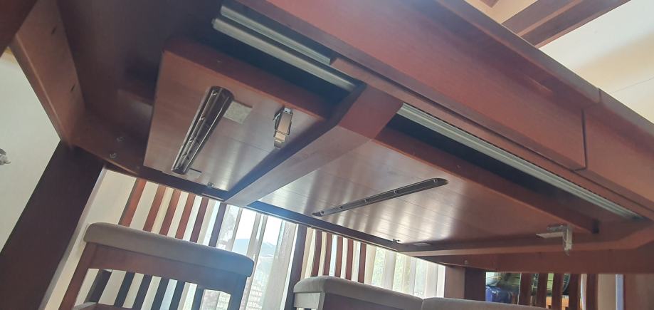 Dimenzije stola: dubina 100 cm, dužina 160 cm + razvlačenjem dodatnih 60 cm u dužinu.
