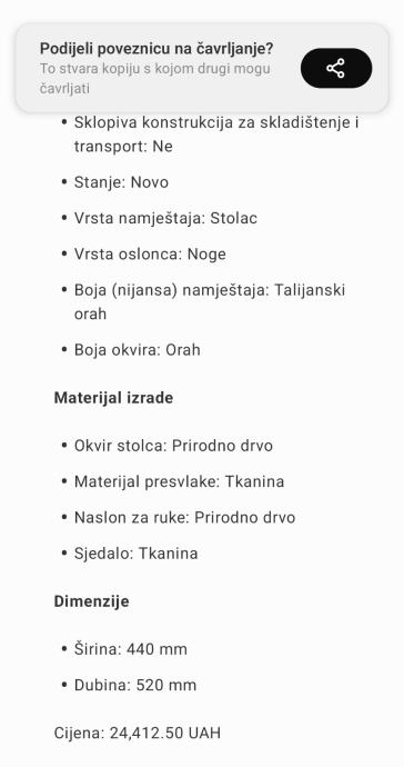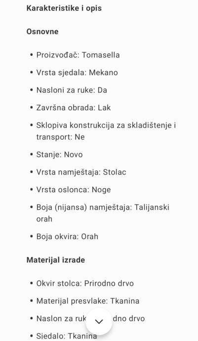 U ponudi izdvajamo luksuzni stol talijanskog proizvođača TOMASELLA. Stol je punog orahovog drva te sjaji visokokvalitetnim lakom.