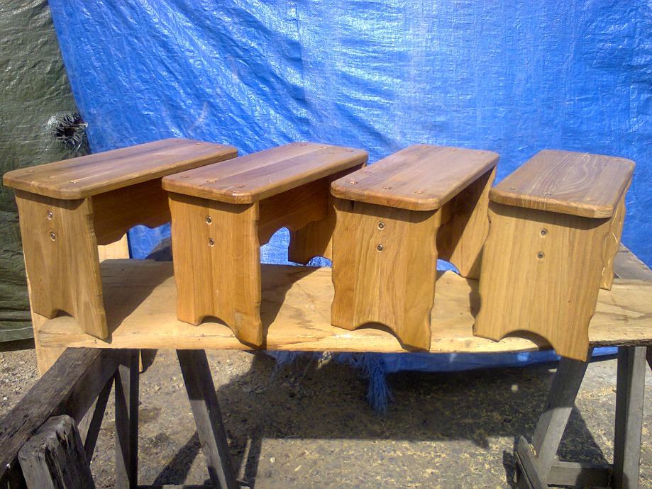Prodajem male stolice (šamlice), izrađene od hrastovog drveta, prelakirane, visina 30 cm, širina 18,5 cm, dužina 40cm.