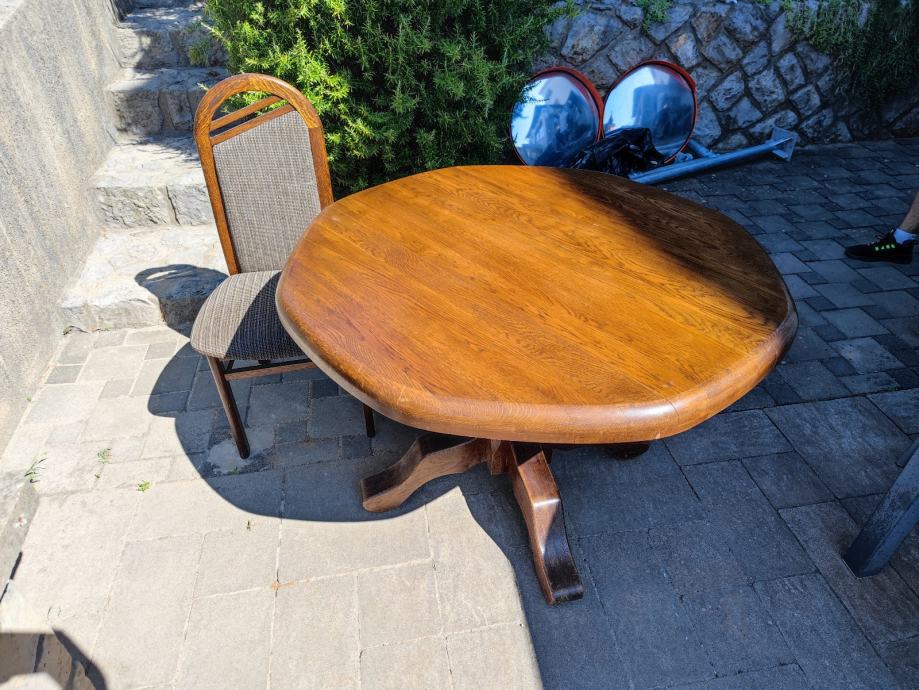 Prodajem masivan drveni stol sa četiri stolice. Sve je u solidnom stanju i nije potrebno farbati niti popravljati.