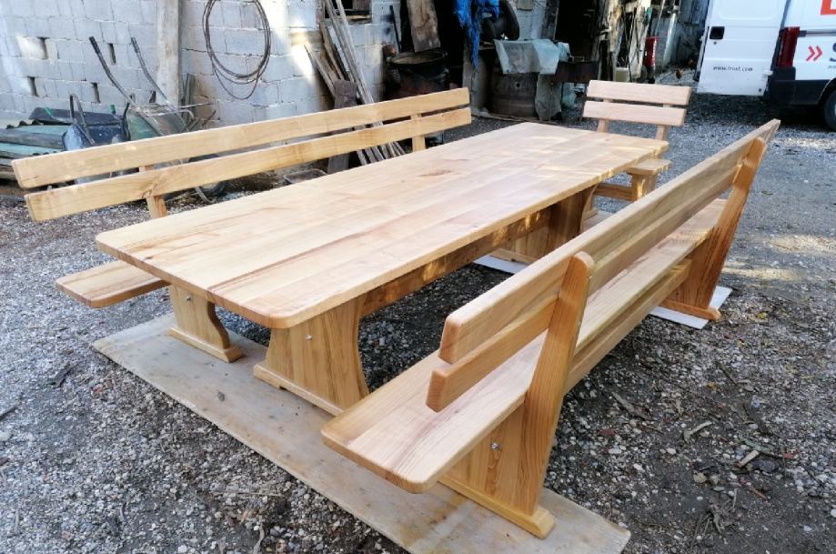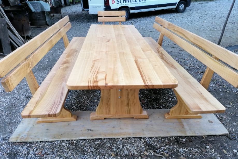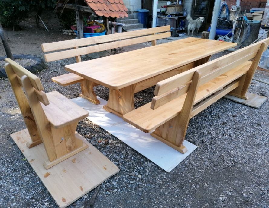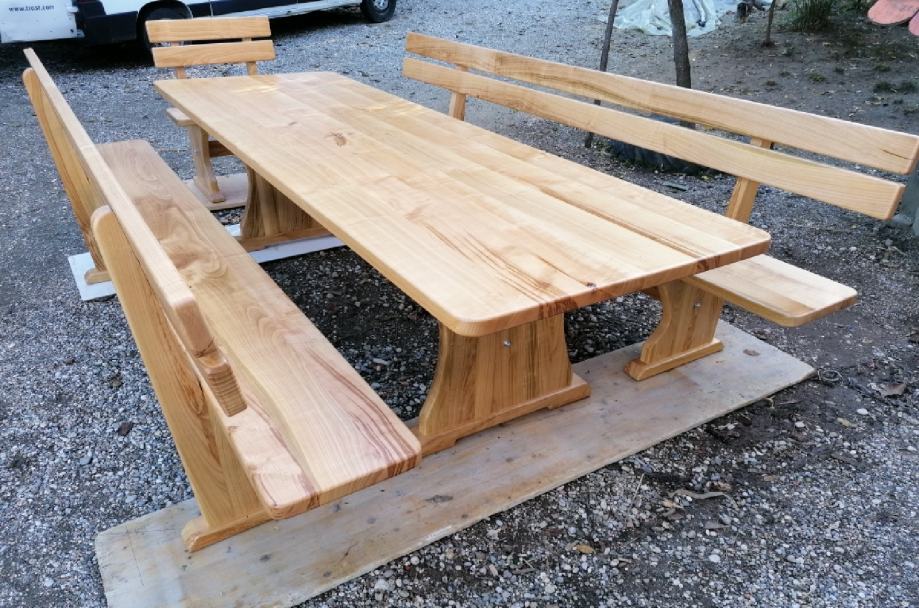 Pridaje se masivna garnitura od trešnje dimenzije 250x100 i dvije klupe