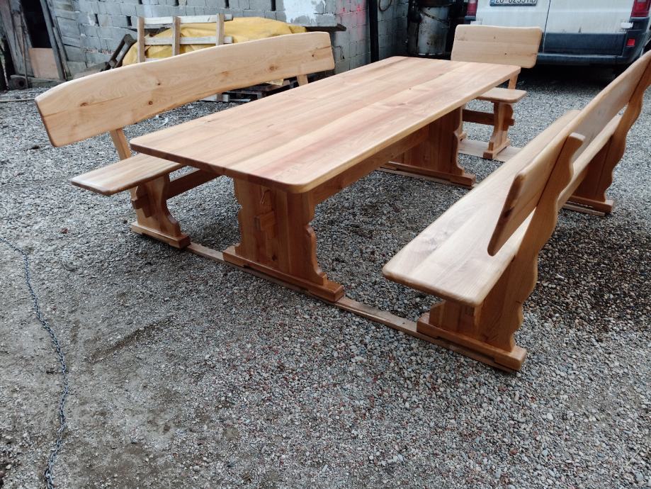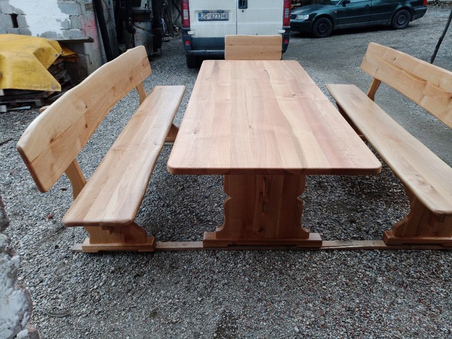 Pridaje se masivna garnitura od tresnja dimenzije 200x100 stol i dvije klupe
