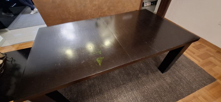 Sa vidljivim oštećenjem furnira na površini..stol je čvrst i masivan..Prodajem za 150 eura