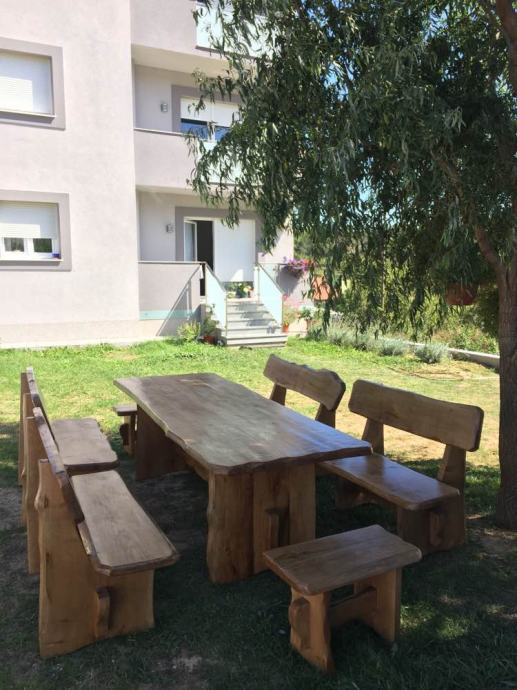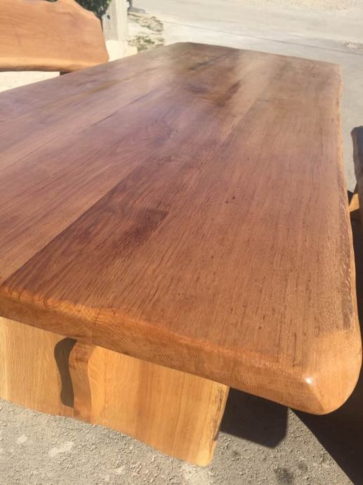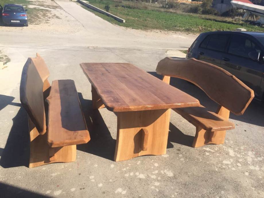 Prodajem dvije garniture masivnih stolova, klupa i banaka od kvalitetnog materijala-hrastovina, debljina 5cm.
