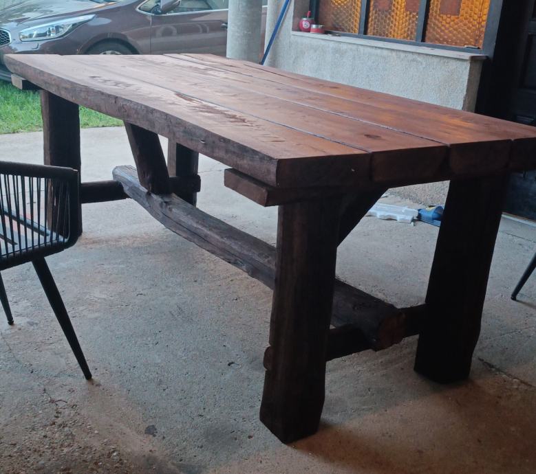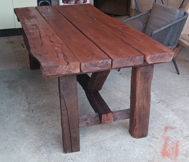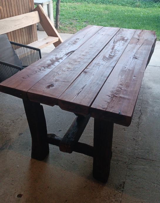 Stol je ručno izrađen te lakiran, namijenjen primarno za vanjsku upotrebu