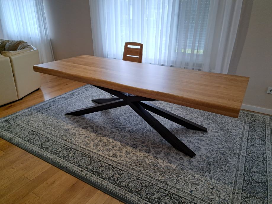 Podaje se Masivni stol sa metalnim nogama za blagovaonu.
