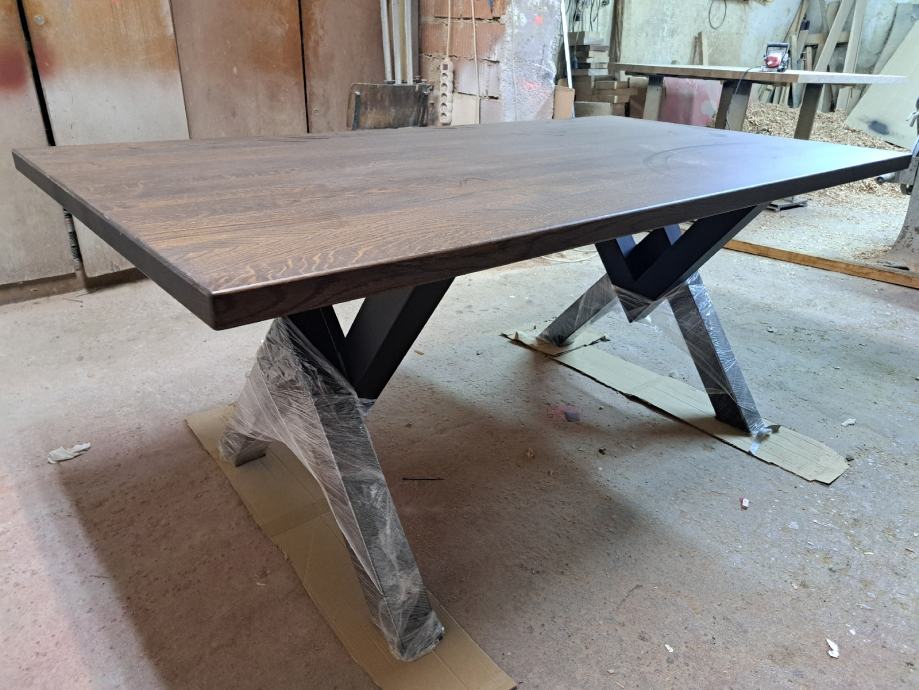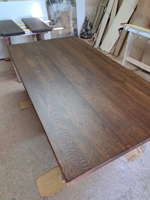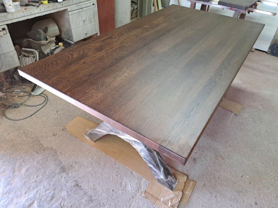 Prodaje se Masivni stol za blagovaonu sa metalnim nogama ploce puno drvo hrast .