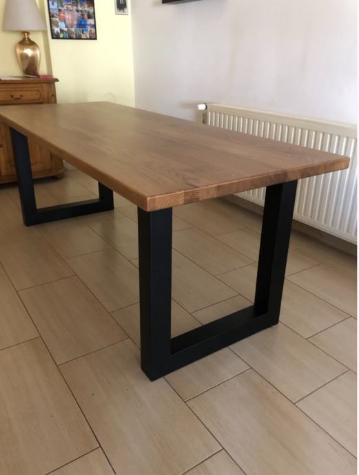 Masivni stol za blagovaonu od hrast, sa metalnim nogama
