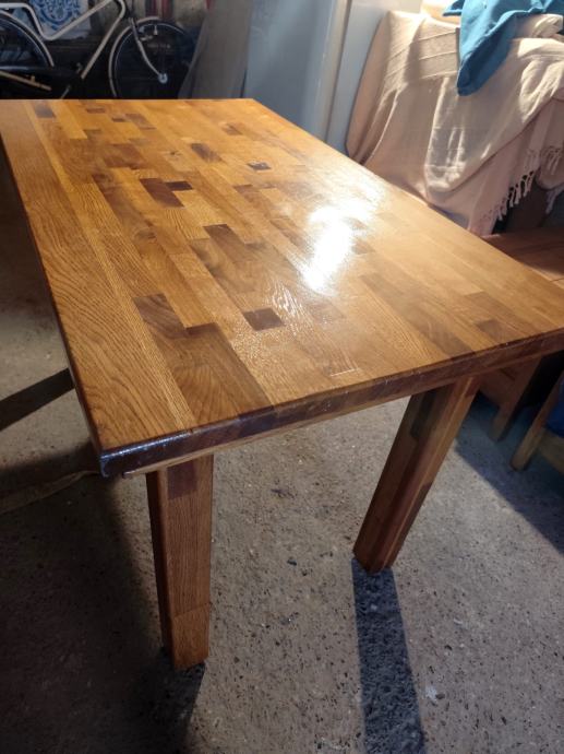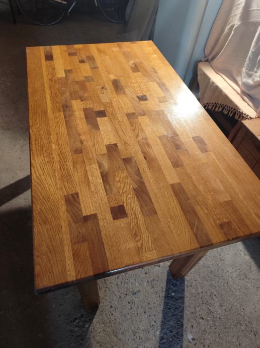 Prodaje se stol od punog drveta, atraktivna kombinacija hrasta i oraha. Kratko korišten. Ručni rad.