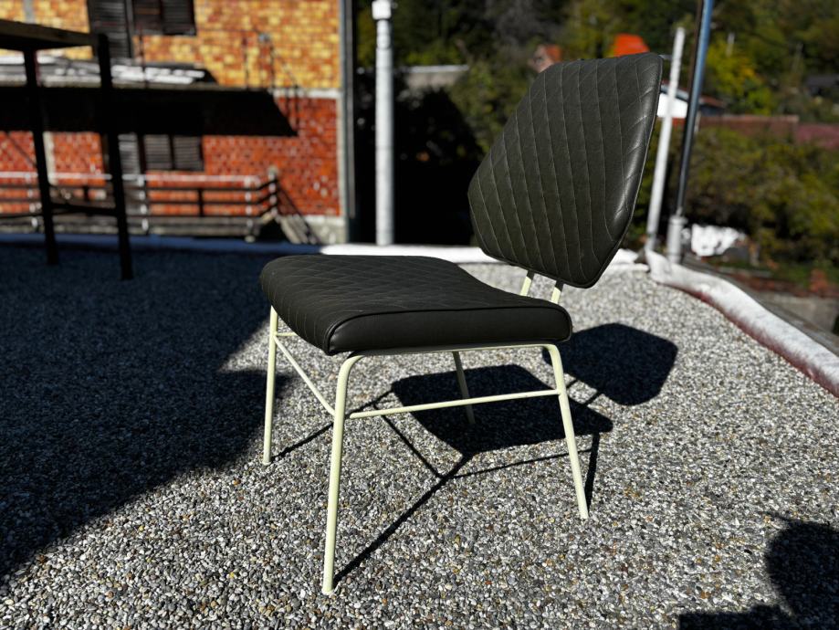 Metalne stolice s tamnozelenom eko kožom. 4 komada, očuvane.