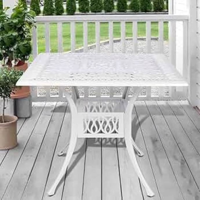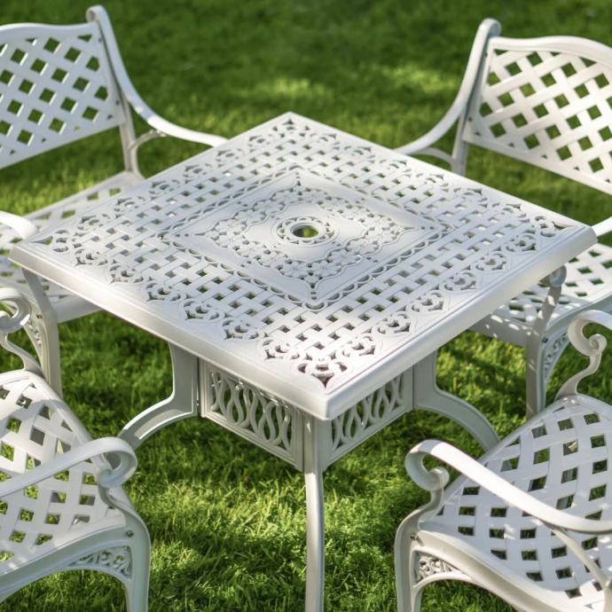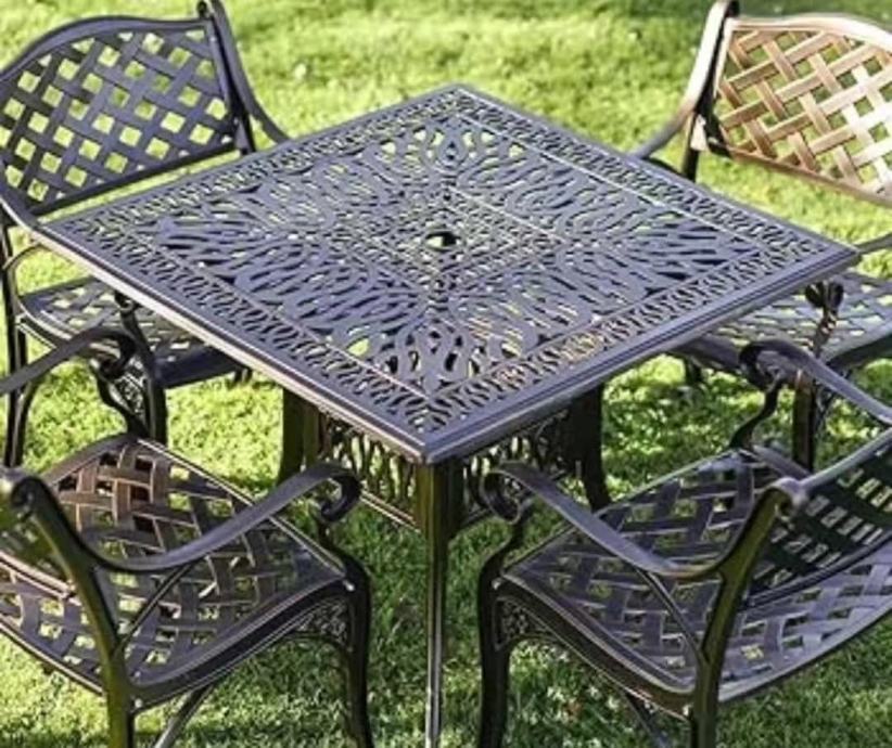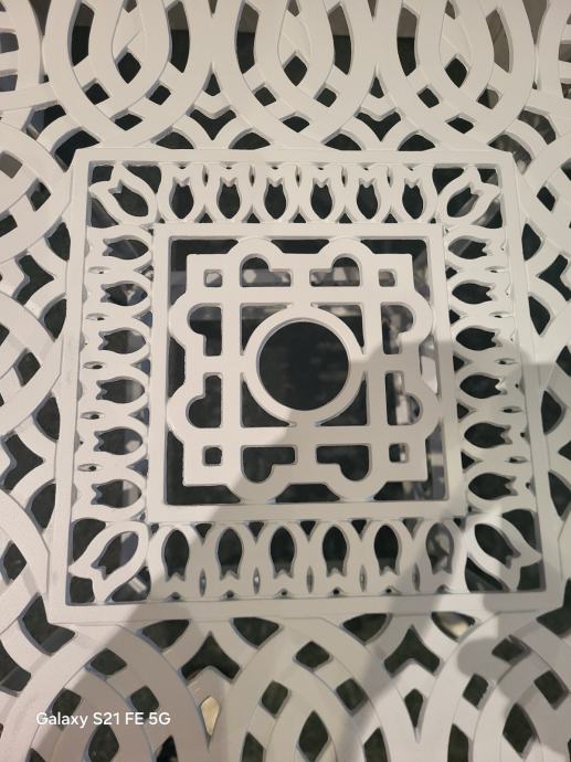 Prodajem NOVE metalne kockaste stolove ploča 90×90 u antique bijeloj, bronze i crnoj boji