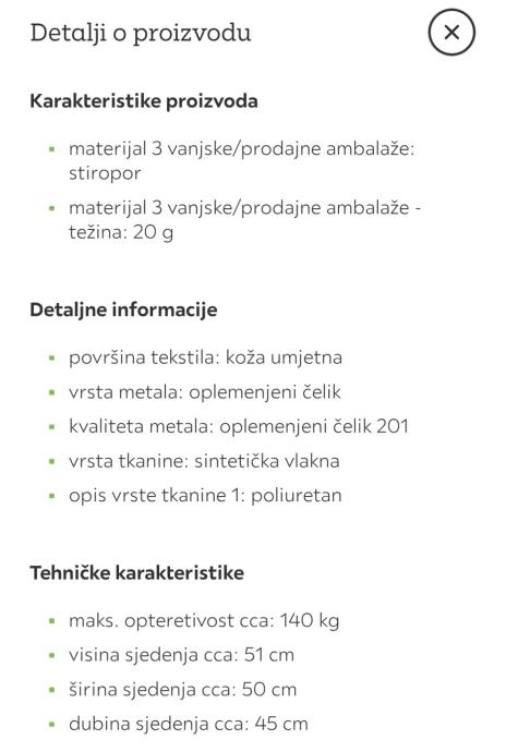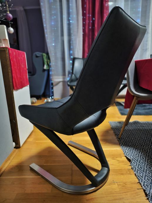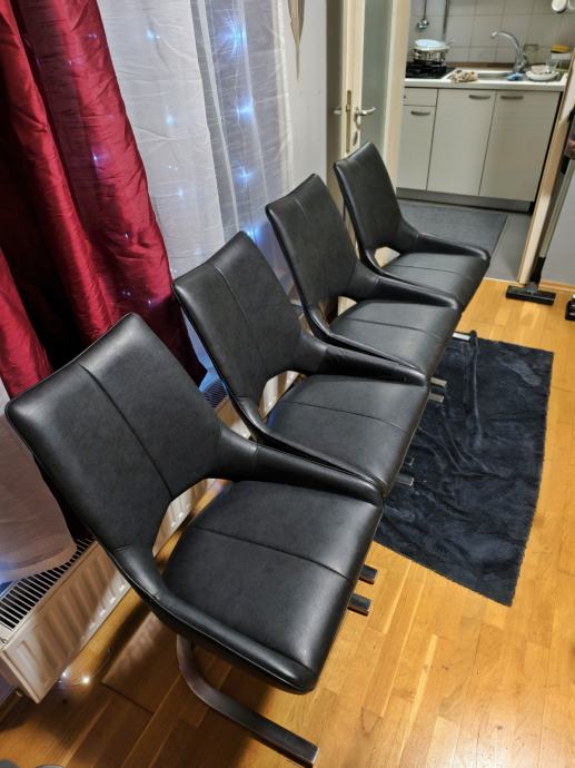 Robusne stolice od crne eko kože sa čeličnim nogama. Vrlo udobne. U vrlo dobrom stanju sa sitnim tragovima korištenja. Cijena je za sva 4. Kom.