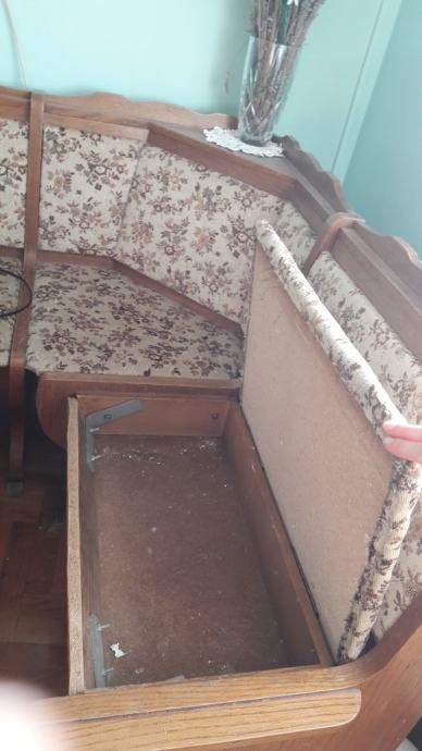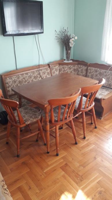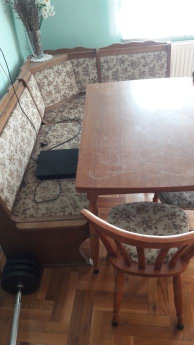 Polovni namjestaj za sjedenje, kutna klupa, stolice i stol.