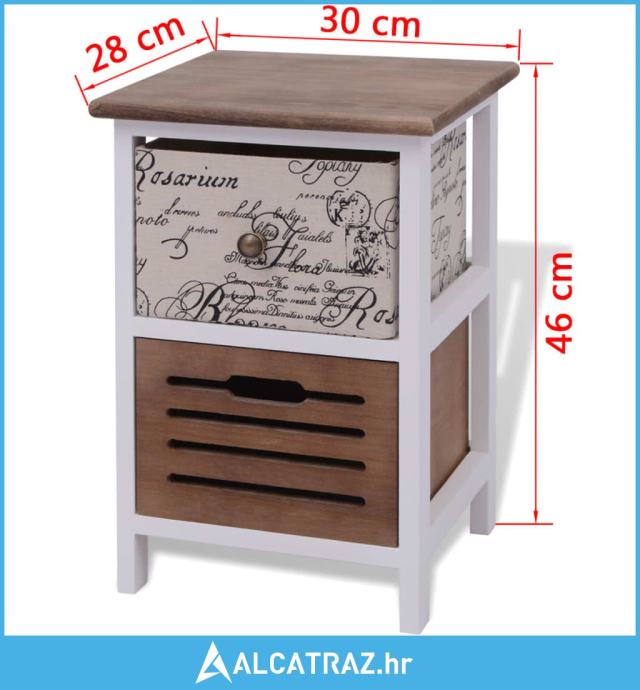 Ovi kompaktni noćni ormarići su vrhunski izrađeni. Svaki ormarić ima 2 ladice koje pružaju veliki prostor za organiziranu pohranu malih predmeta na dohvat ruke. Dezeni u vintage stilu daju ormarićima rustikalni šarm.