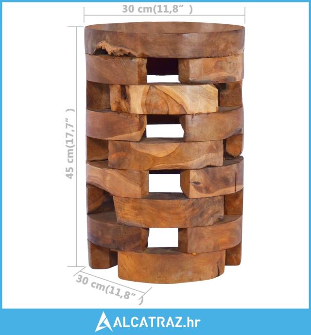 Noćni stolić pažljivo je ručno izrađen od masivne tikovine, zbog čega je snažan i izdržljiv. Izrada i lijepi drveni godovi čine svaki komad namještaja jedinstvenim i malo drukčijim od sljedećeg. Noćni ormarić ima i snažnu površinu za držanje manjih predmeta na dohvat ruke. Ovaj bočni stolić služi i kao stolić za kavu, noćni ormarić, tabure itd.