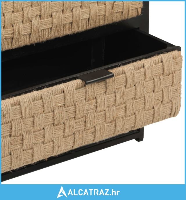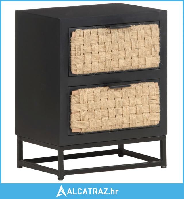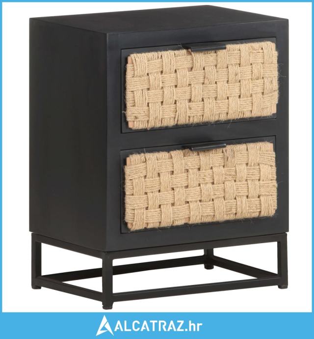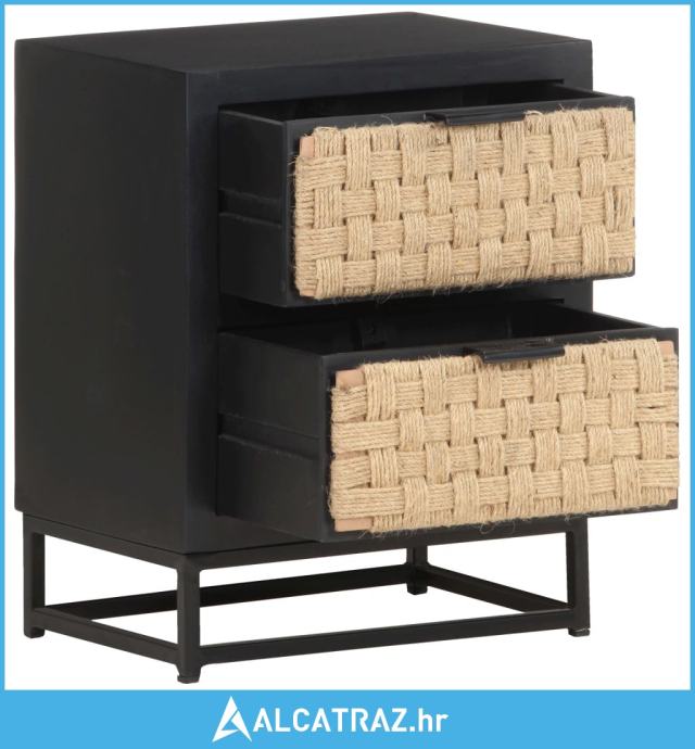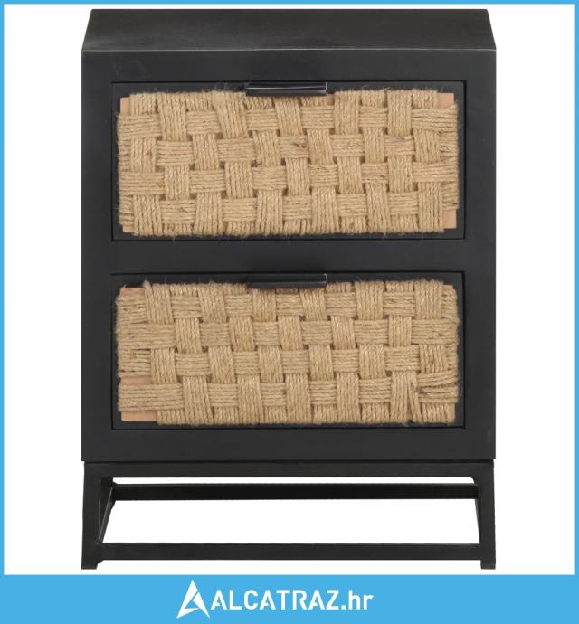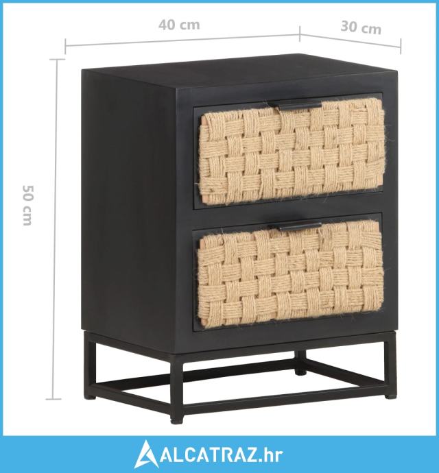 Bočni ormarić izrađen je od masivnog drva manga, tropskog tvrdog drva sa snagom da podnese težinu. Također podnosi trošenje uzrokovano vremenom, zbog čega je stabilno i izdržljivo. Ladica je napravljena od prirodne jute, a željezna baza također pridonosi dodatnoj stabilnosti. Noćni ormarić ima čvrstu površinu za stavljanje noćne svjetiljke, budilice ili bilo čega drugog što bi vam moglo zatrebati. Ovaj noćni ormarić ima dvije ladice, što pruža dovoljno prostora za držanje manjih predmeta organiziranima i na dohvat ruke.