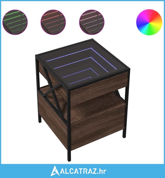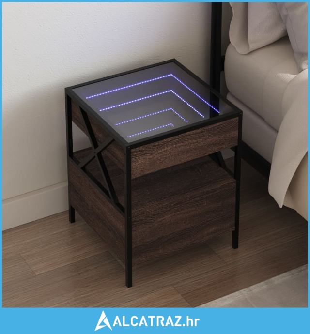 Noćni ormarić s beskonačnim LED boja smeđeg hrasta 40x40x51 cm - NOVO