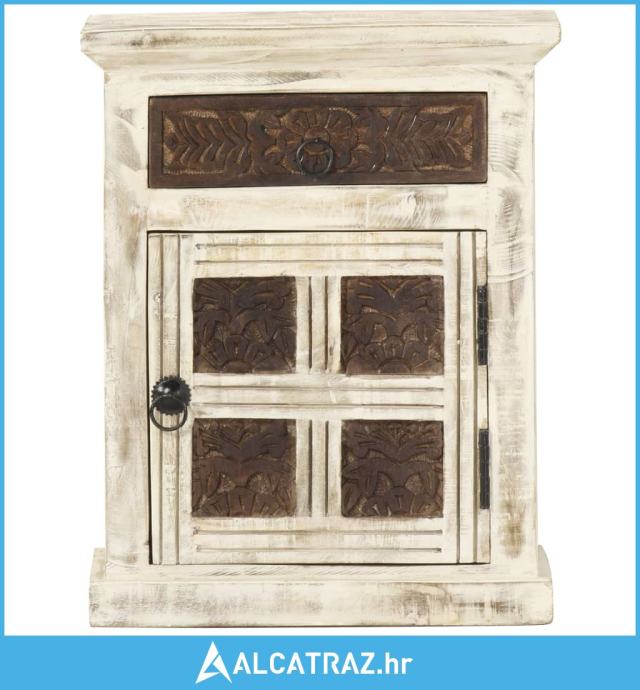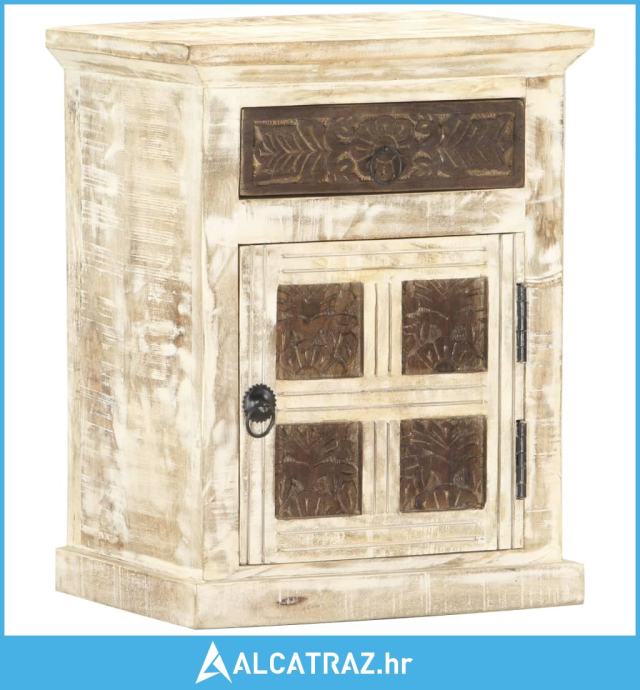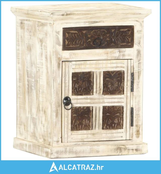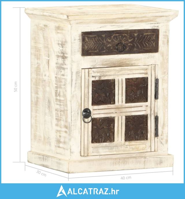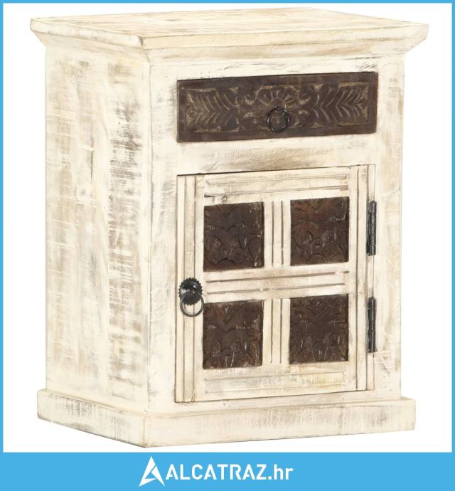 Noćni ormarić bijeli 40 x 30 x 50 cm od masivnog drva manga - NOVO