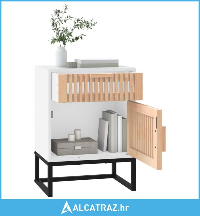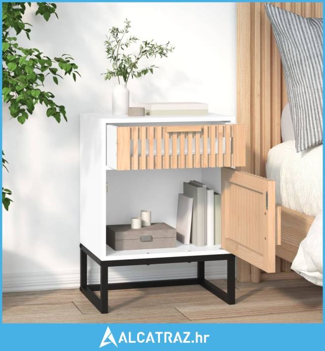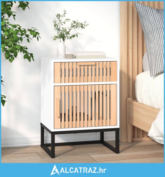 Noćni ormarić bijeli 40x30x55,5 cm konstruirano drvo i željezo - NOVO