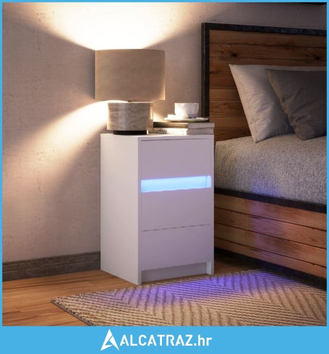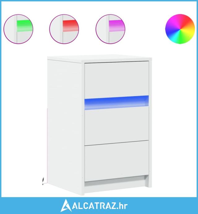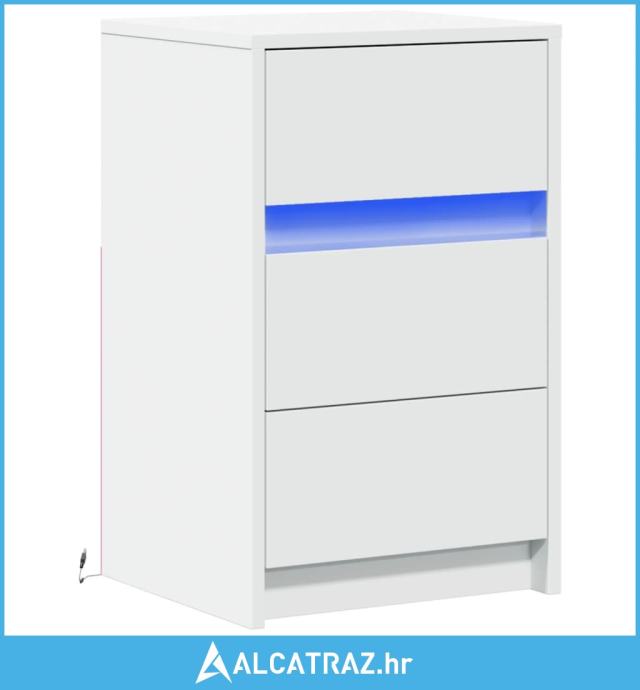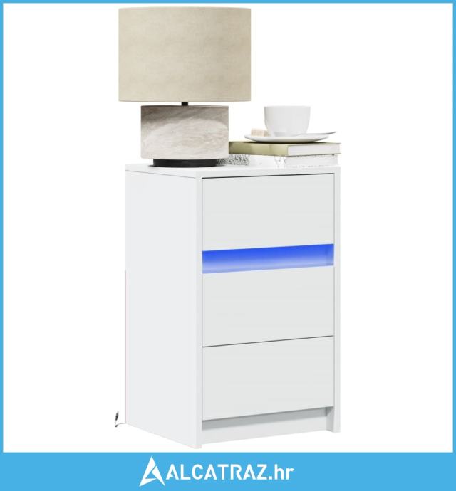 Noćni ormarić s LED svjetlima bijeli od konstruiranog drva - NOVO
