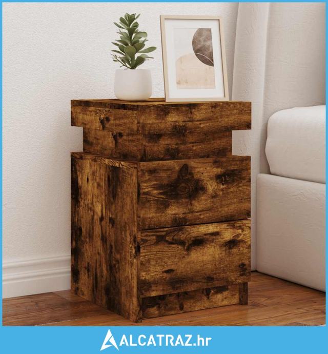 Noćni ormarić s LED svjetlima boja dimljenog hrasta 35x39x55 cm - NOVO