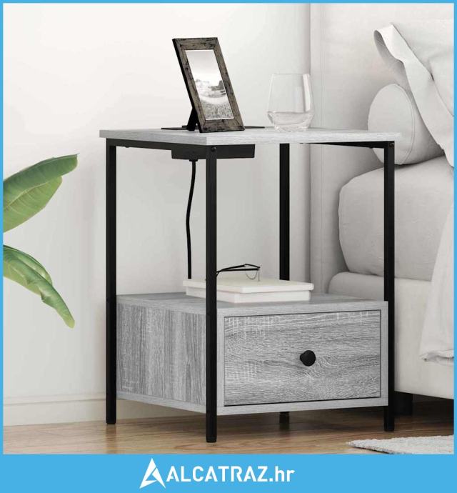 Noćni ormarić s punjačem s ladicama 2 pcs Sivi hrast sonoma - NOVO