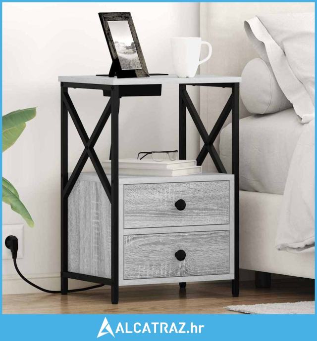 Noćni ormarić s punjačem Sivi hrast sonoma Konstruirano drvo - NOVO