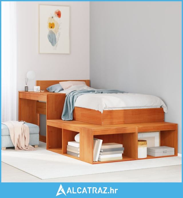 Noćni ormarić sa stolom voštano smeđi 222x122x75 cm od borovine - NOVO