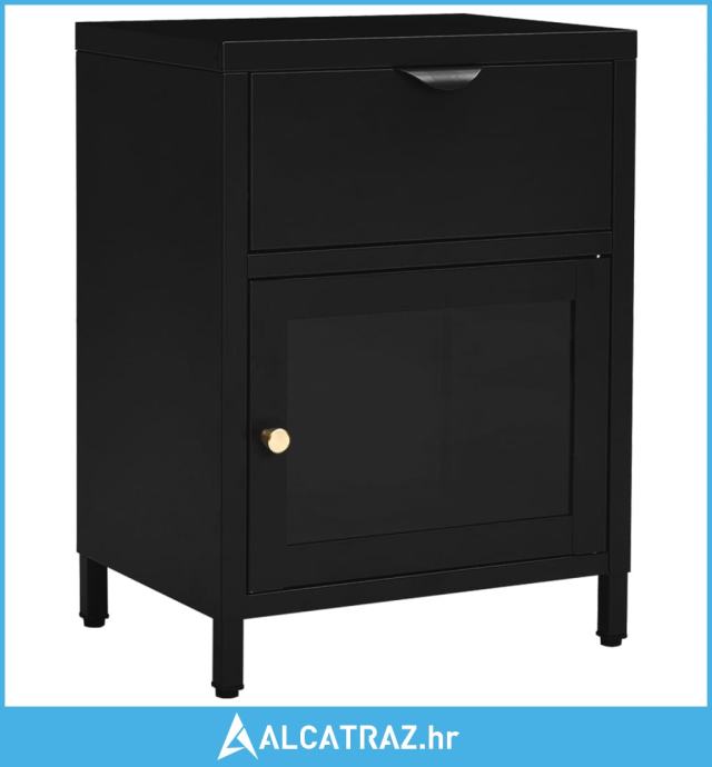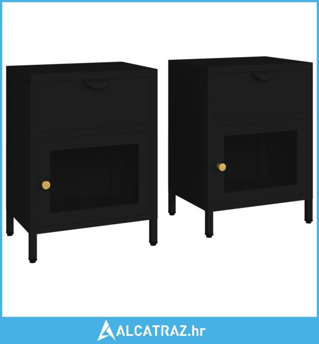 Noćni ormarići 2 kom crni 40 x 30 x 54,5 cm od čelika i stakla - NOVO