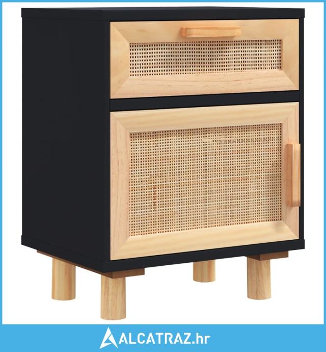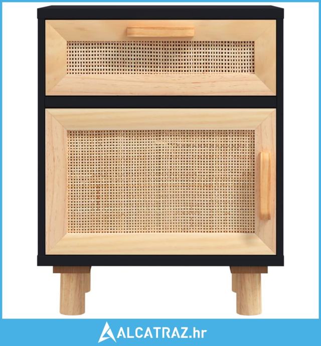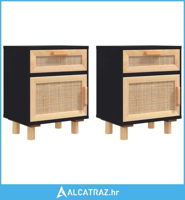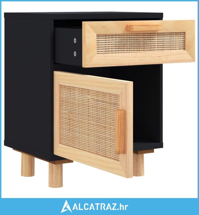 Noćni ormarići 2 kom crni masivna borovina i prirodni ratan - NOVO