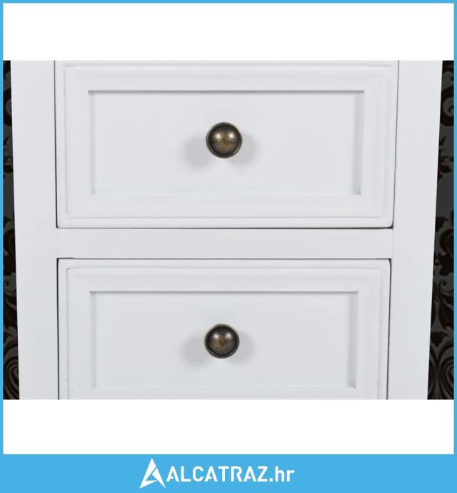 Isporuka uključuje četiri noćna ormarića. Imajte na umu da, budući da je ovaj namještaj napravljen od drva i obojen u bijelo te je također ručno izrađen, može doći s malim nedostatkom.