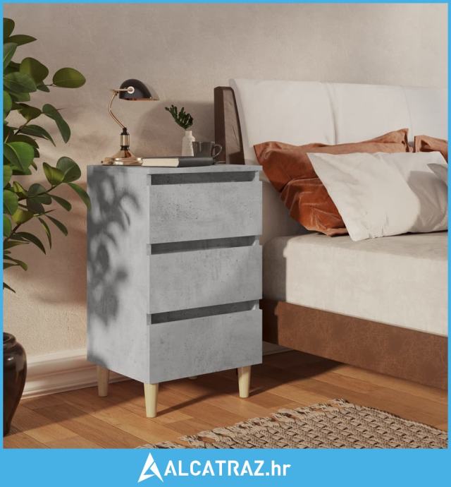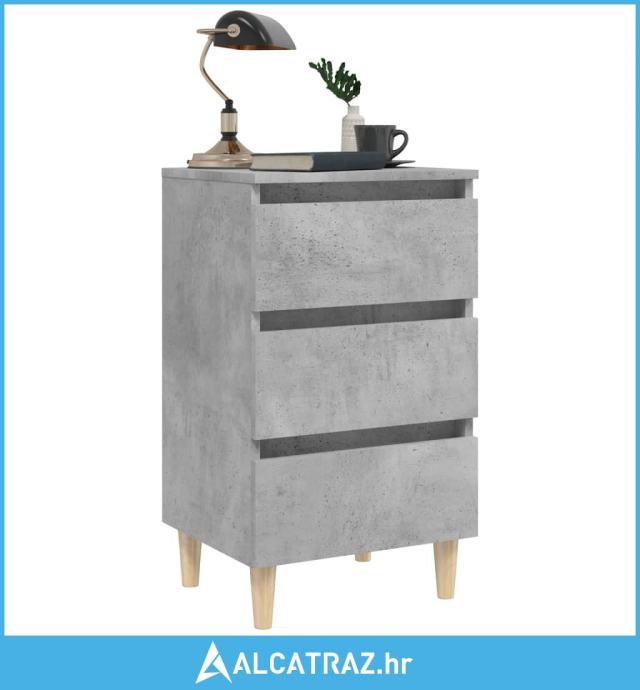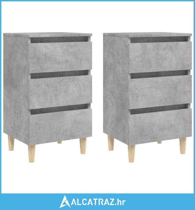 Noćni ormarići s drvenim nogama 2 kom boja betona 40x35x69 cm - NOVO