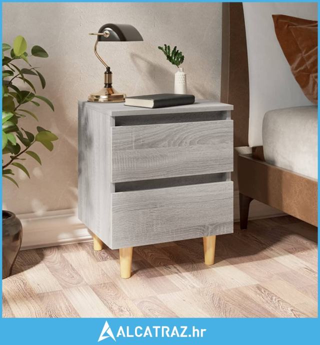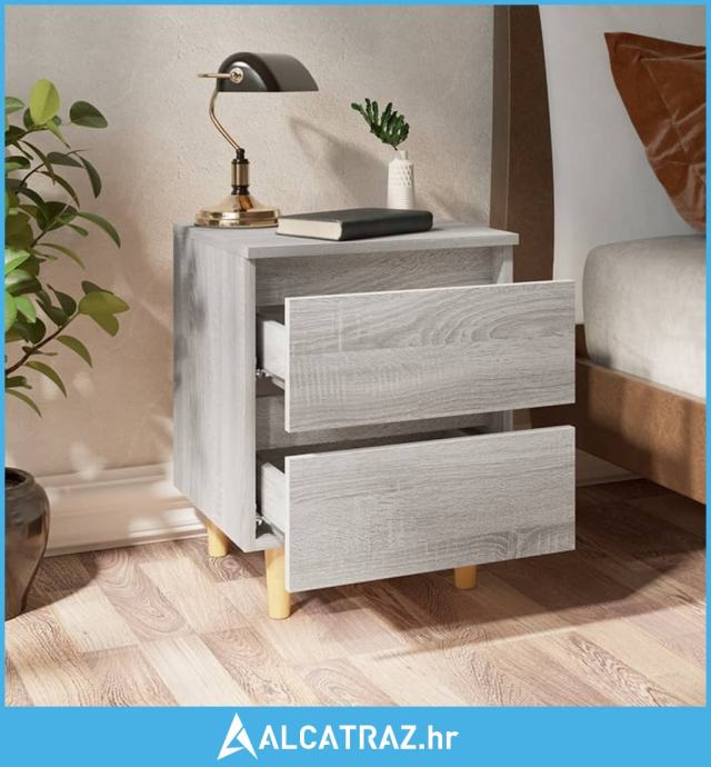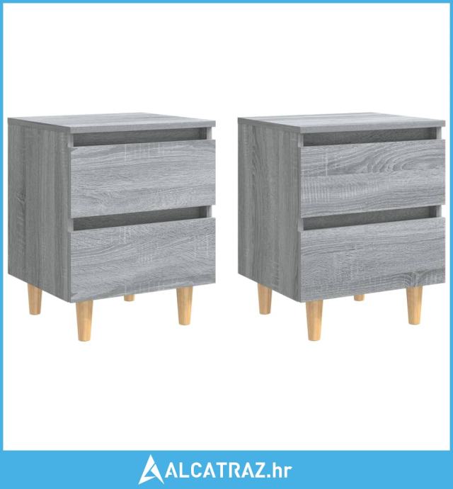 Noćni ormarići s drvenim nogama 2 kom sivi hrast 40x30x50 cm - NOVO