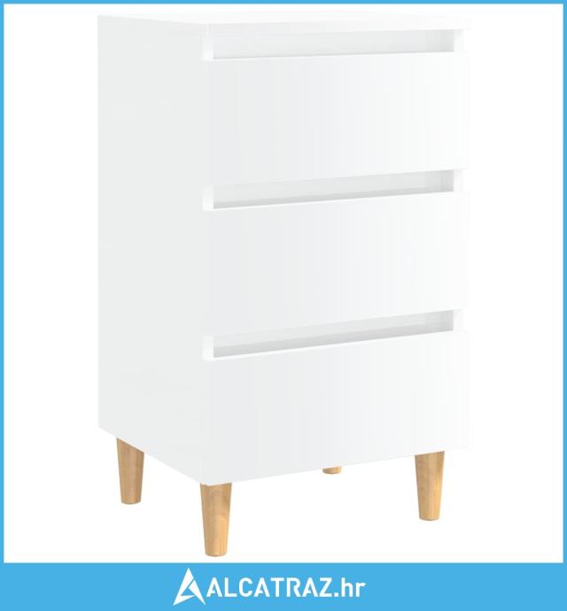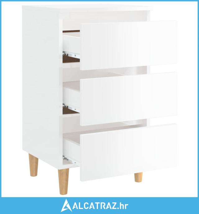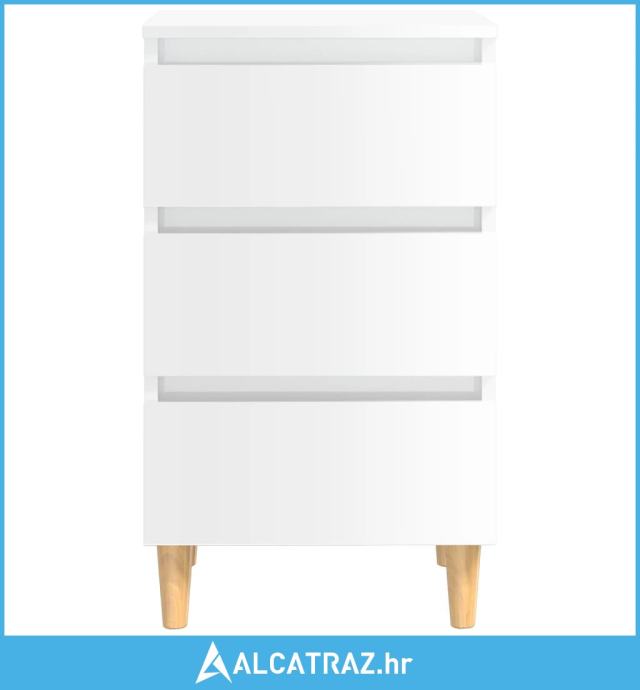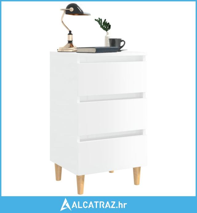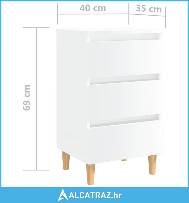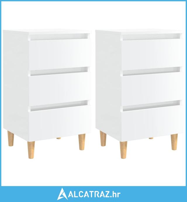 Noćni ormarići s drvenim nogama 2 kom sjajni bijeli 40x35x69cm - NOVO
